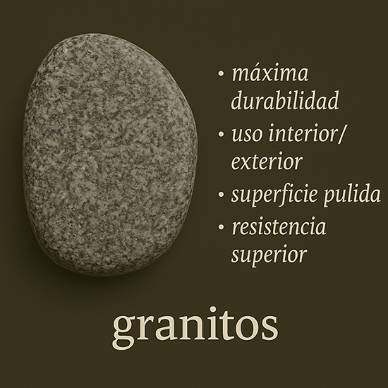 El granito es apto para pavimentos, revestimientos, muros, arcos, dinteles y decoraciones. Se presentan cortados en bloques irregulares, adoquines, losetas, lingotes, baldosas e incluso bachas.